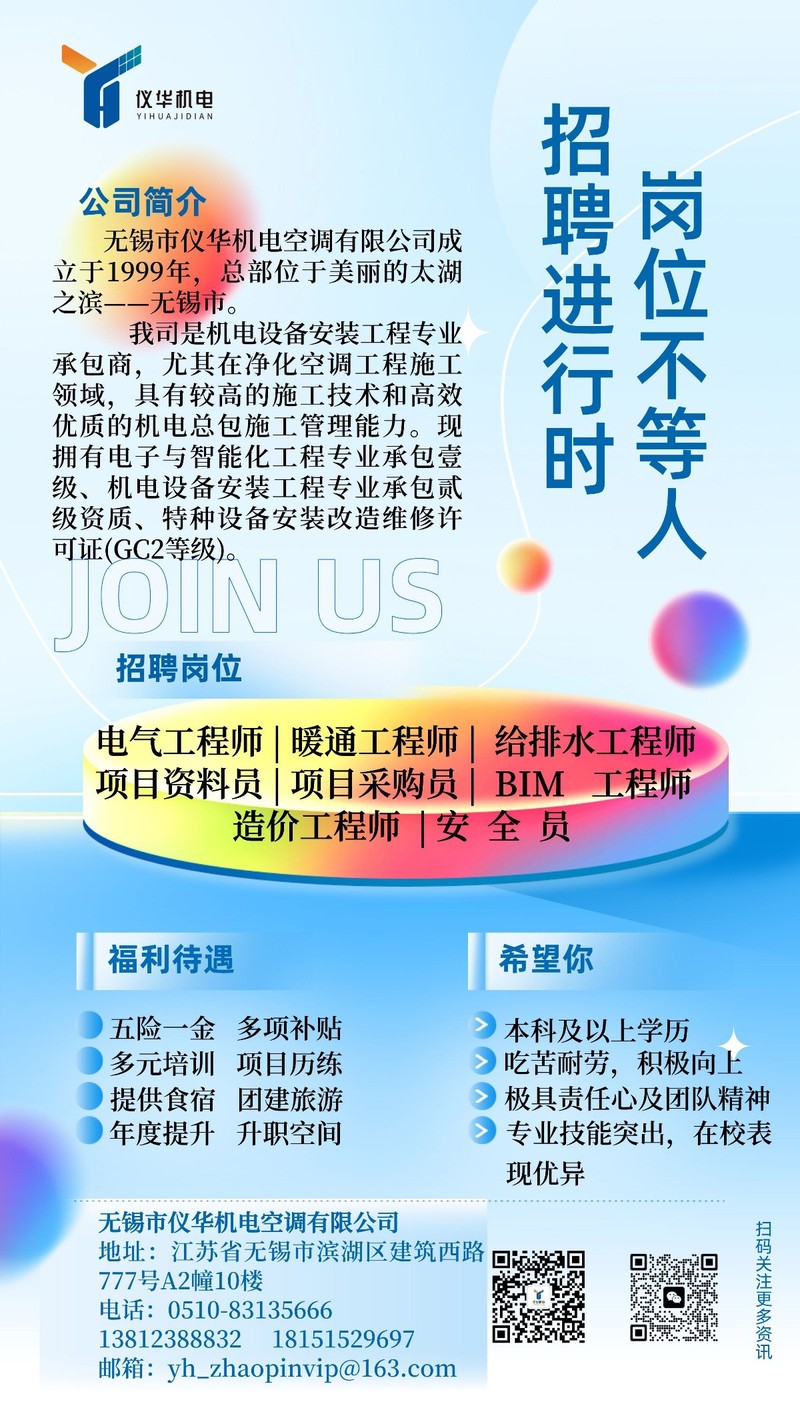 招聘[2202070] 无锡市仪华机电空调有限公司-校园招聘