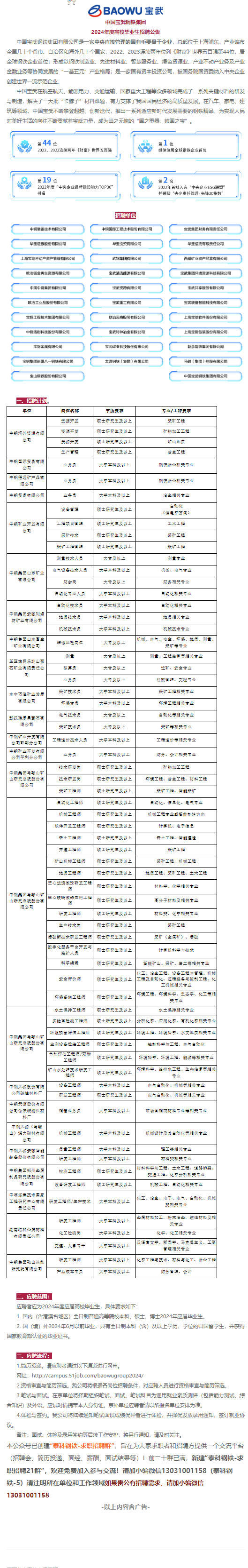 招聘[2024061]中国宝武招聘