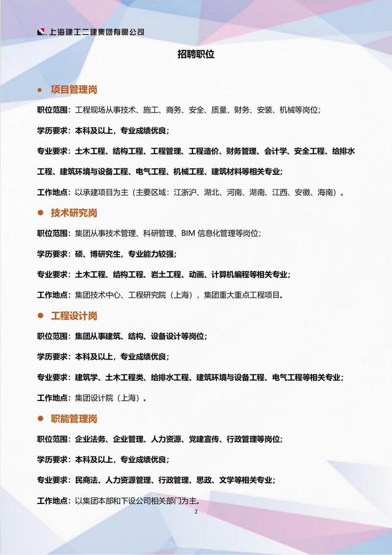 招聘[2024070]上海建工二建集团有限公司2024春季招聘简章