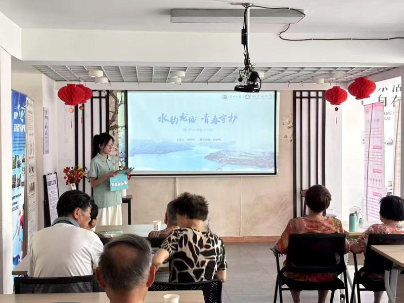 7月7日,团队面向广化桥社区老年群体举办“守护母亲河,传承运河魂”主题宣讲。聚焦水污染危害与家庭节水技巧,实践队员用通俗语言和生活案例,讲解大运河对城市发展的历史意义与保护运河生态的紧迫性,通过互动问答的方式引导老人分享与运河相关的生活记忆,结合老年生活场景,提出家庭节水、垃圾分类小妙招,鼓励老人担任“社区监督眼”,及时反馈周边水环境状况。活动引发共鸣,有效激发了老年群体参与运河保护的热情,老年居民表示将带动家人参与保护,共同守护河清岸绿的美好家园。