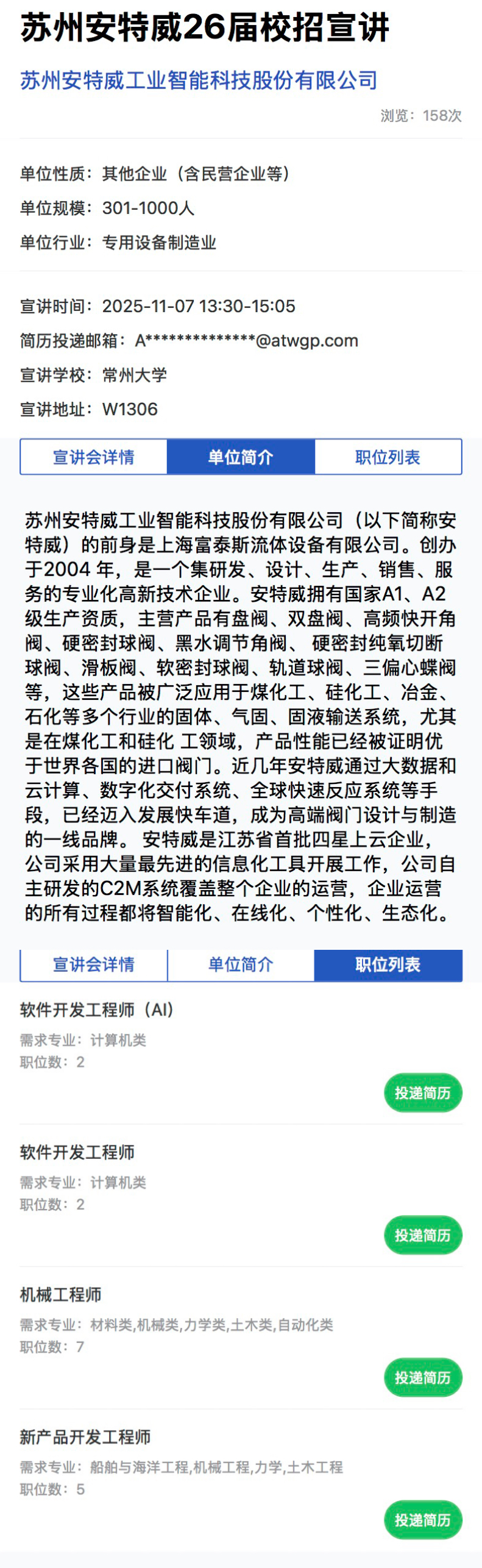招聘宣讲会[2025055]苏州安特威26届校招宣讲
