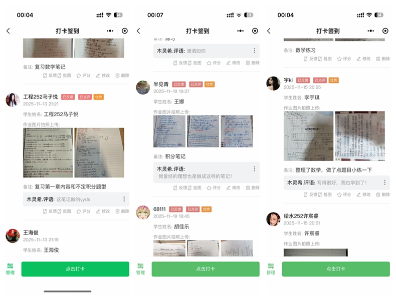 在分享展示环节,成功完成“21天打卡挑战”的同学们依次登台。在3至5分钟的真诚讲述中,他们剖析了这三周以来思想与行动上发生的微妙蜕变。屏幕上流转的一张张照片,记录了他们点滴的坚持:那是备战英语四级时写满笔记的单词书,是深夜攻克高数难题后的草稿纸,也是操场上挥洒汗水后的运动打卡图。这些“看得见”的成果,生动诠释了坚持的力量,让在场的评委与观众深刻感受到了同学们积极进取、昂扬向上的青春信心。