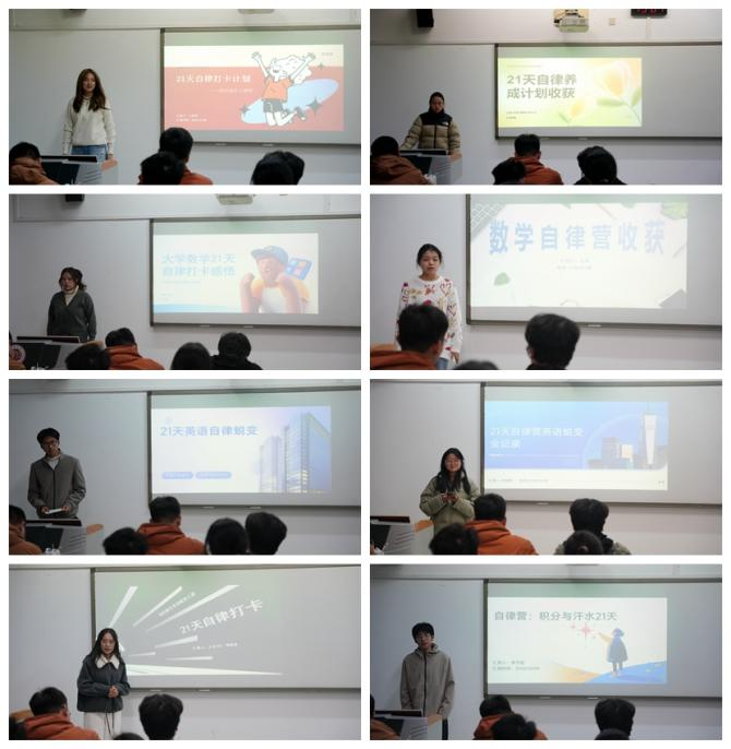 为帮助学生克服缺乏持续学习的动力与外部监督,自律习惯难以养成的困境,91视频 自律中心通过低门槛、高互动的自律打卡形式搭建学习场景与锻炼任务,社群陪伴强化坚持动力。12月9日晚,“21天自律养成营”分享展示活动在立德楼X111教室顺利举行。自12月10日至12月31日活动期间,共有130名学生报名,76名学生坚持完成21天打卡,最终共有29名选手报名参与分享展示。91视频 自律中心主席曹睿、学生会主席张鑫到场担任评委。
