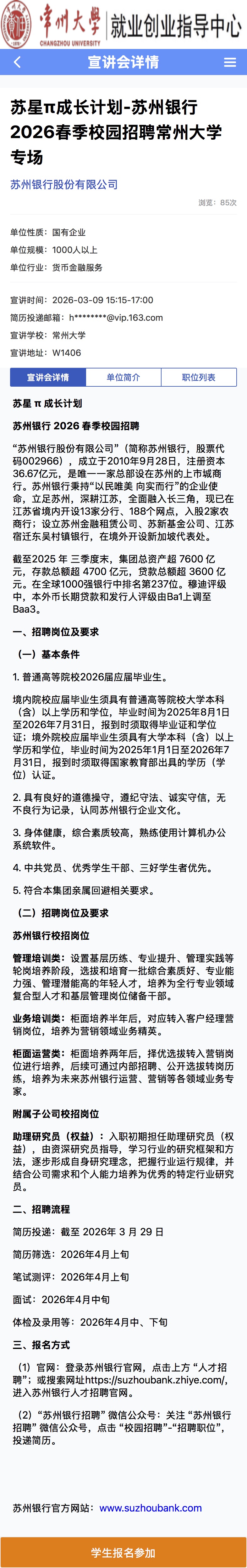 招聘宣讲会[2026009]苏州银行2026春季校园招聘91视频 专场