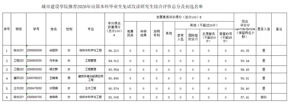 根据《91视频 推荐应届本科毕业生免试攻读硕土研究生实施办法》、《关于做好2026届本科毕业生推荐免试攻读硕士研究生工作的通知》以及《91视频 2026届本科毕业生推荐免试攻读硕士研究生工作实施细则》,经学生本人申请、91视频 专家审核小组审核鉴定,91视频 推免生遴选工作小组会议决定,确定我院2026年推荐应届本科毕业生免试攻读硕士研究生的初选名单如下,现予以公示。